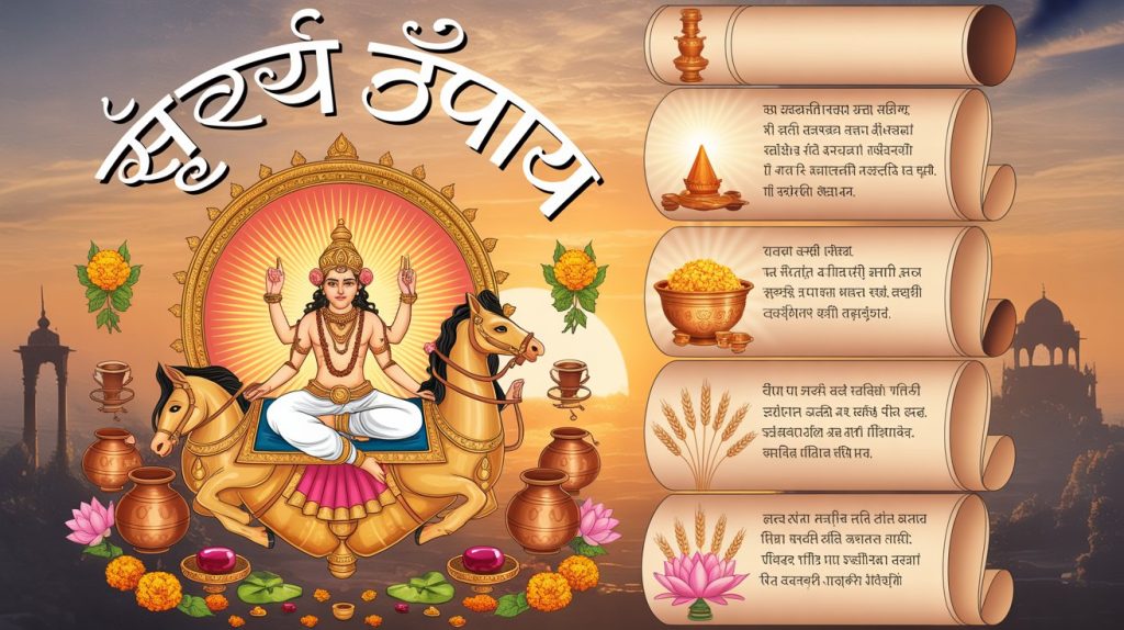 - Method: Take a copper vessel filled with water. Add a pinch of Red Sandalwood (Roli), a red flower, and some jaggery. Pour the water slowly towards the Sun while looking at the sun rays through the falling stream of water.